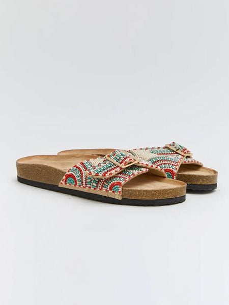 – zapięcie: sprzączka- noski: otwarte- detale: ozdobne koraliki- podeszwa: antypoślizgowa