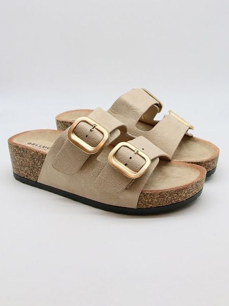 – zapięcie: bez- noski: otwarte- detale: ozdobna klamra- forma obcasa: koturny- podeszwa: antypoślizgowa