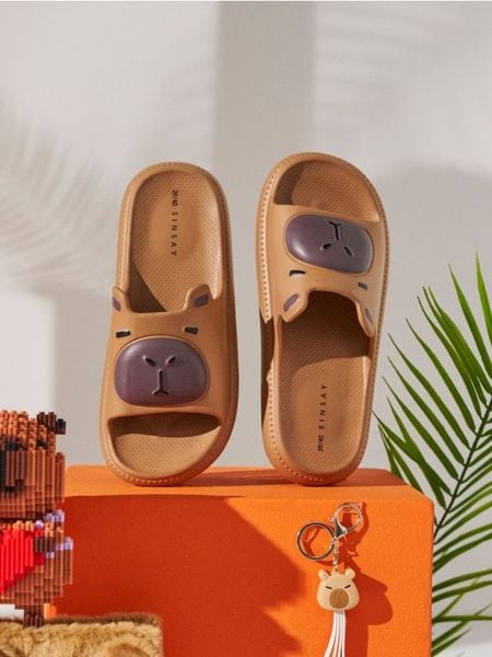 Sinsay – Piankowe klapki z motywem kapibary – beżowy –