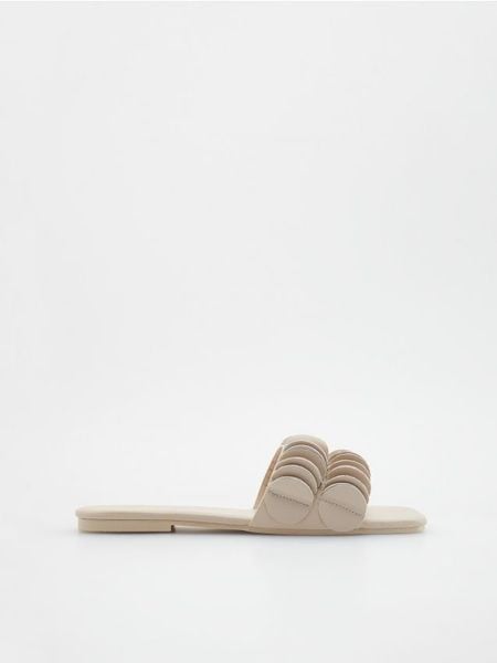 Klapki ze skórzanymi elementami – beżowy