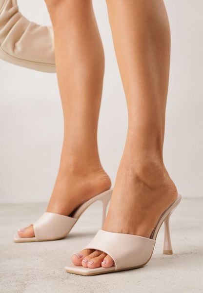 Beżowe Klapki na Szpilce z Kwadratowym Noskiem Mellota