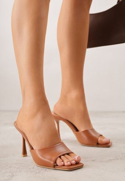 Jasnobrązowe Klapki na Szpilce Ozdobione Kwadratowym Noskiem Eudanassa