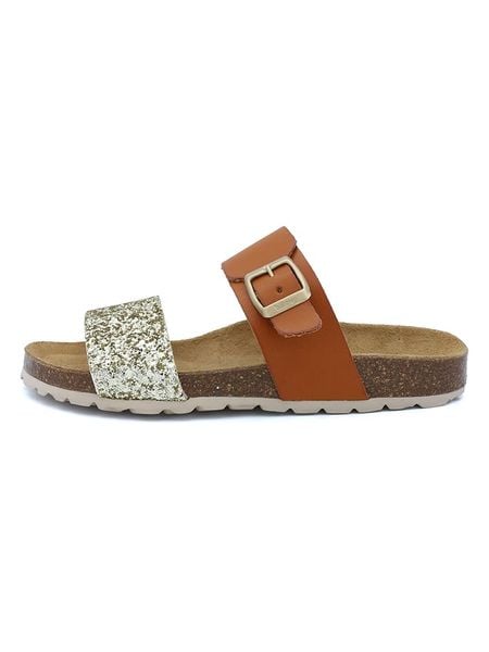 – skórzana wkładka: ergonomicznie formowana- zapięcie: sprzączka- noski: otwarte- detale: połyskujące elementy- podeszwa: antypoślizgowa