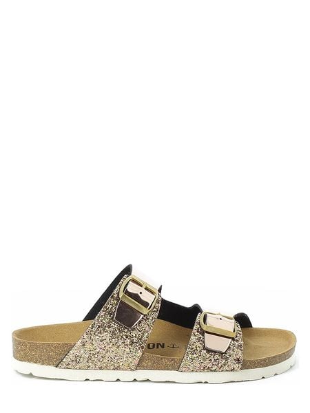 – zapięcie: sprzączka – noski: otwarte – powierzchnia: o metalicznym połysku, połyskująca- skórzana wkładka: ergonomicznie formowana- podeszwa: lekko profilowana