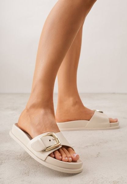 Beżowe Klapki na Platformie z Klamrą Molthoe
