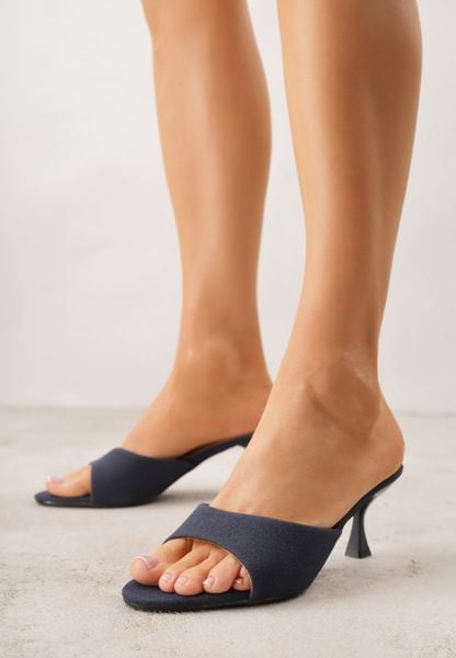Granatowe Klapki na Niskim Koturnie z Otwartym Noskiem i Paskiem na Rzep Metanis