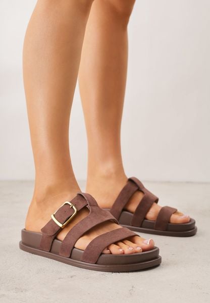 Brązowe Klapki z Geometryczną Cholewką i Klamrą z Boku Endrita