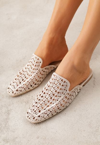 Beżowe Klapki Mule z Ażurową Cholewką Szydełkową Civeza