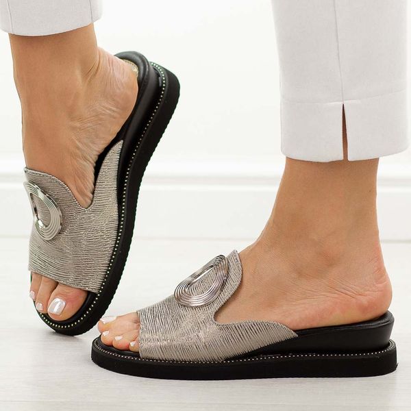 Srebrne klapki damskie na koturnie M.Daszyński 2267-7 26