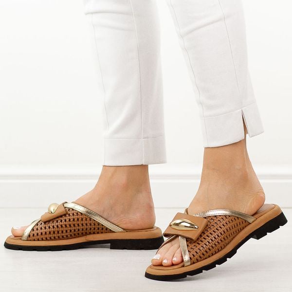 Brązowe skórzane klapki damskie T.Sokolski 26008
