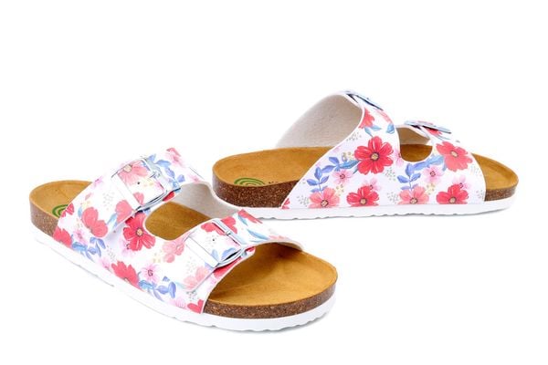 Klapki damskie. Wkładka typu fusbet. Zapięcie na dwie klamerki. Lekka, wygodna podeszwa.