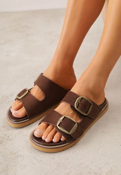 Brązowe Klapki VICES Ozdobione Dużymi Klamrami Jenniviane