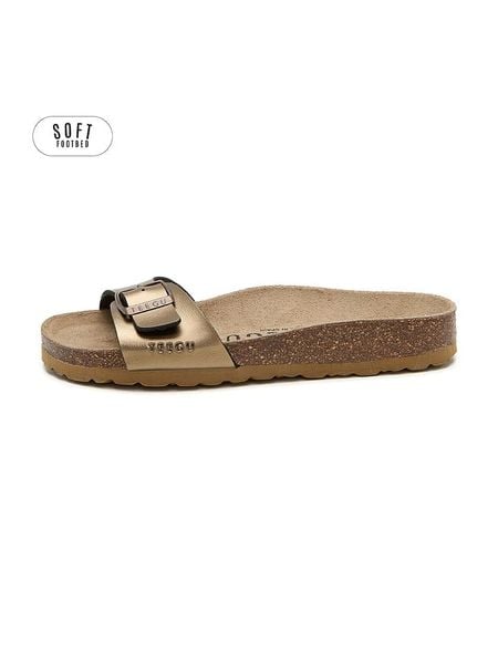 – zapięcie: sprzączka- noski: otwarte- powierzchnia: z metalicznym połyskiem- wkładka: ergonomicznie formowana- podeszwa: antypoślizgowa