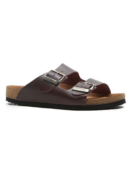 – materiał wierzchni z wysokiej jakości skóry- wkładka wykonana ze skóry i naturalnego korka- zapięcie: sprzączka- noski: otwarte- wkładka ze skóry i naturalnego korka: ergonomicznie formowana- podeszwa: antypoślizgowa