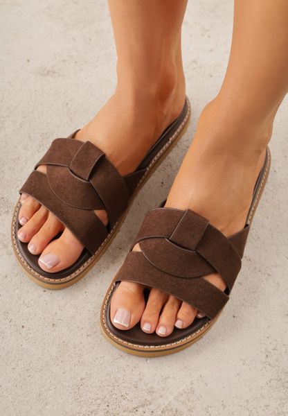 Ciemnobrązowe Klapki VICES z Geometryczną Cholewką Lorazeiros