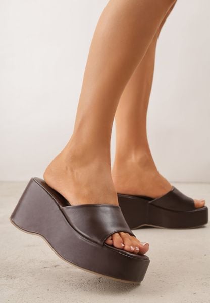 Brązowe Chunky Klapki na Koturnie i Platformie z Kwadratowym Noskiem Magass