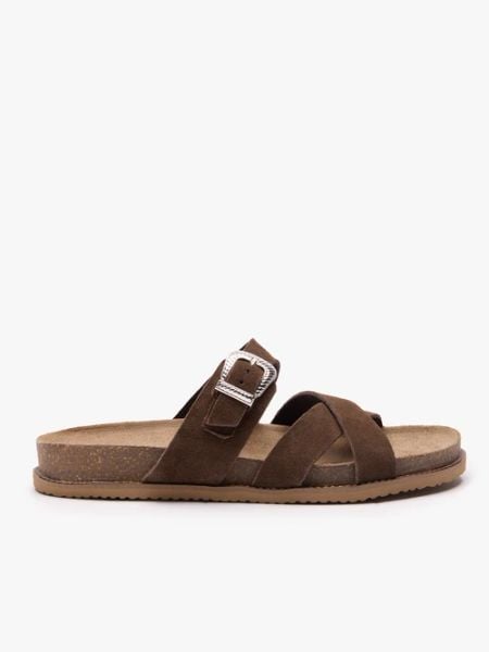 Ciemnobrązowe klapki damskie Relax to doskonała propozycja na ciepłe dni, łącząca elegancję z wygodą. Wykonane z wysokiej jakości skóry welurowej, zapewniają trwałość i komfort przez cały dzień. Metalowe elementy w kolorze srebrnym subtelnie podkreślają elegancki charakter butów. Płaski, grubszy spód zapewnia stabilność, a skórzana wyściółka i podszewka gwarantują wygodę. Pasek z ozdobną klamrą oraz dwa […]
