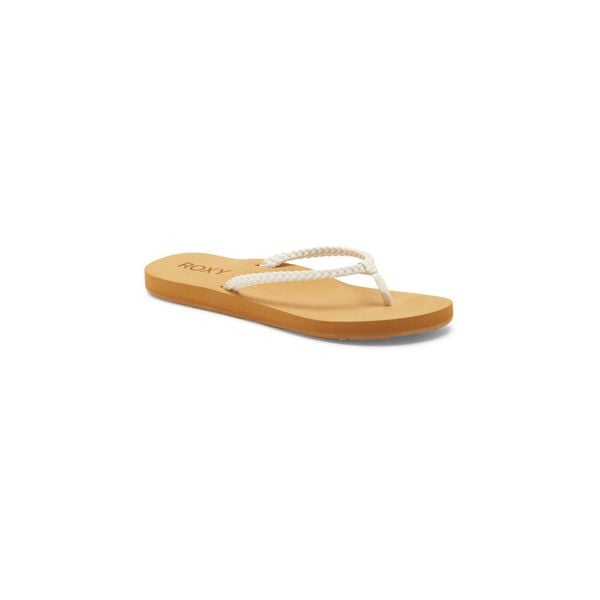 Klapki plażowe dla kobiet. Cechy produktu: Tkanina: wielowarstwowa syntetyczna skóra z plecionego materiału, Wkładka: miękka EVA z wyrytym napisem Roxy, Podeszwa: TPR z kwiatowym wzorem Roxy. Ocena: Tags: Sporty Surfing Buty plażowe Japonki plażowe Kolor: Biały Rozmiar: Przeznaczenie: female Marka: ROXY