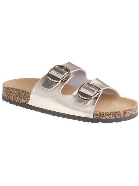 – zapięcie: sprzączka- noski: otwarte- powierzchnia: z metalicznym połyskiem- wkładka: ergonomicznie formowana- podeszwa: antypoślizgowa