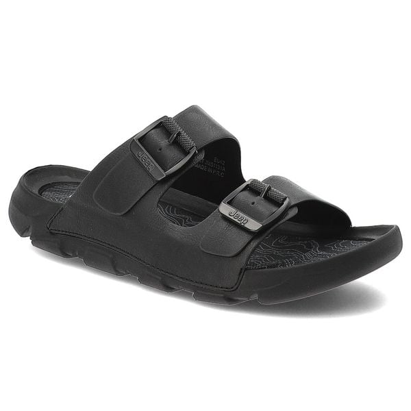 Klapki męskie Jeep, na platformie profilowane klasyczne z klamrami sportowe i codzienne, czarne, JM51131A-062