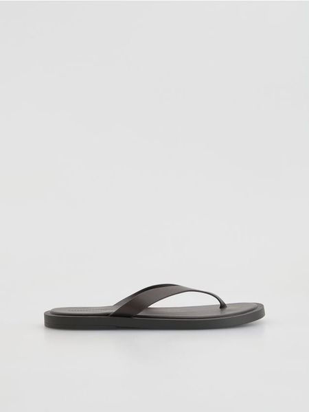 Skórzane klapki – ciemnobrązowy