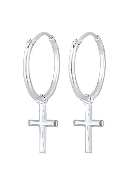Elli Damskie kreole zawieszka krzyżyk wiara religia w srebrze 925 Sterling Silver Kolczyki koła 1 ct