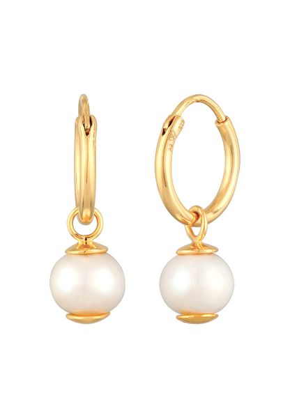 Elli Damskie kreole zawieszka Elegant z perły hodowlana słodkowodna w pozłacanym srebrze próby 925 Sterling Silver Kolczyki koła 1 ct