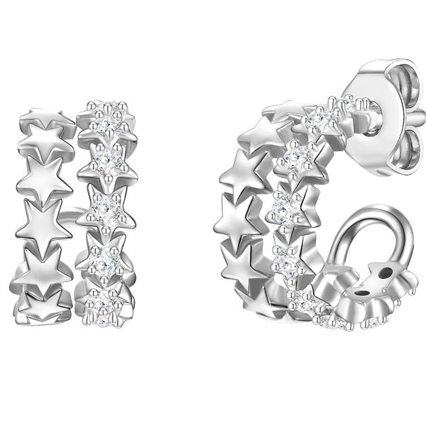 Glanzstücke München Srebrne kolczyki kreole Gwiazdy srebro wysokiej próby Cyrkonia srebrny Kolczyki koła 1 ct Damski