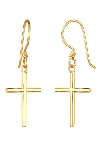Elli Damskie kolczyki wiszące krzyż w pozłacanym srebrze 925 Sterling Silver Kolczyki 1 ct