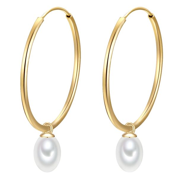 Glanzstücke München Srebrne kolczyki kreole srebro wysokiej próby Perła hodowlana słodkowodna żółte złoto Kolczyki koła 1 ct Damski