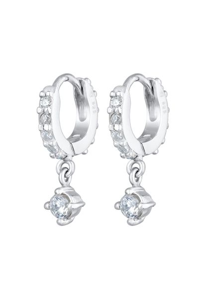 Elli Damskie kreole soliter zawieszka Minimal z kryształami ze srebra próby 925 Sterling Silver Kolczyki koła 1 ct