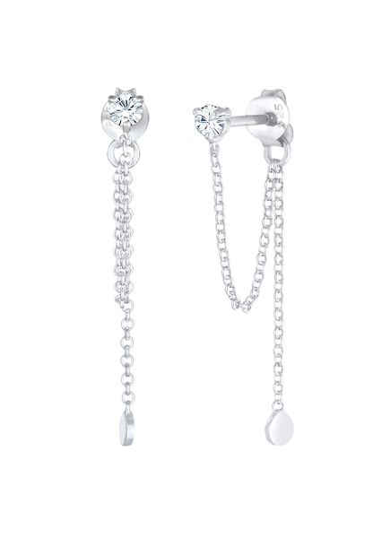 Elli Damskie kolczyki do uszu z pojedynczym łańcuszkiem i kryształkami ze srebra próby 925 Kolczyki 1 ct