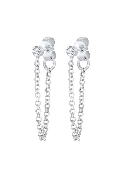 Elli Damskie kolczyki sztyfty łańcuszek Trend Geo z kryształem w srebrze próby 925 sterling silver Kolczyki 1 ct