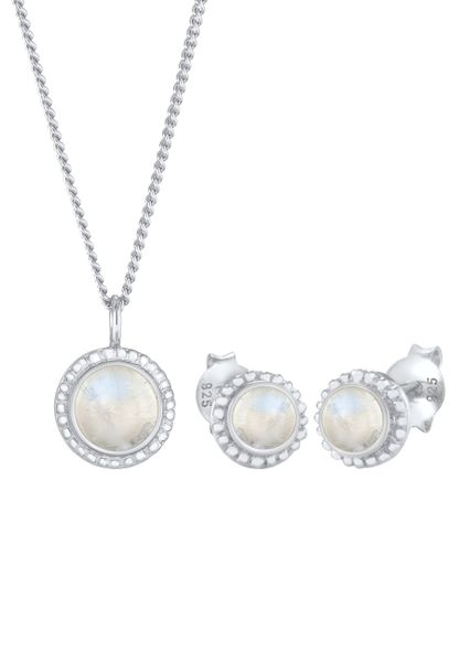 Elli PREMIUM Damskie kolczyki z wisiorkiem okrągły kwiat z kamieniem księżycowym w pozłacanym srebrze 925 Sterling Silver Zestawy 1 ct