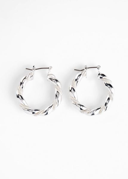 Zawsze modne kolczyki kółka ze skręconych pasków. Kolczyki kółka w srebrnym kolorze z dwóch skręconych metalowych pasków, będą efektownym dodatkiem do każdej stylizacji.