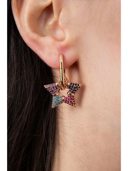 – materiał: metal- powłoka: złoto- zapięcie: wtyk- rodzaj kamienia: cyrkonia- kolor kamienia: wielokolorowy- opakowanie: pudełkoWskazówka: Zdjęcie produktu w powiększeniu.