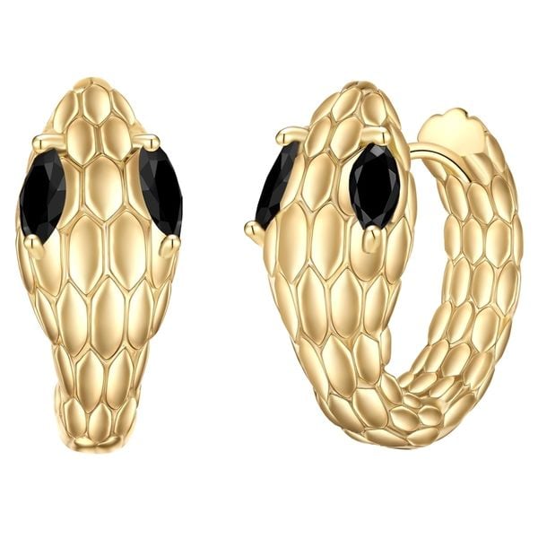 INFORMACJE OGÓLNE: Rodzaj kolczyków: Kolczyki kreolki Grupa docelowa: Kobiety Motyw/temat: Waż MATERIAŁ: Materiał podstawowy: Mosiadz Kolor materiału podstawowego: Żółte złoto Powłoka: Pozłacany 14-karatowym żółtym złotem Wykończenie powierzchni: Polerowana na wysoki połysk WYMIARY: Wysokość kolczyka w mm, w przybliżeniu:18,8 Szerokość kolczyka w mm, w przybliżeniu: 7,8 KAMIENIE: Rodzaj kamienia 1: Cyrkonia Kolor kamienia 1: Czarny Szlif […]
