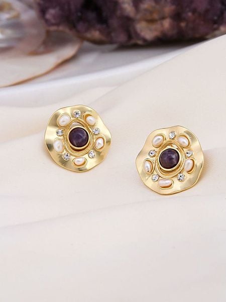 – materiał: mosiądz- powłoka: złoto- zapięcie: pin- rodzaj kamienia: ametyst- kolor kamienia: fioletowy- rodzaj kamienia: cyrkonia- kolor kamienia: bezbarwny- rodzaj perły: hodowlana – słodkowodna- kolor pereł: białyWskazówka: Zdjęcie produktu w powiększeniu.