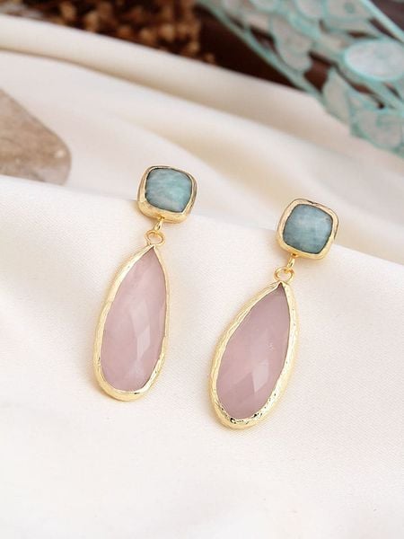 L’Atelier de Gaia Pozłacane kolczyki-wkrętki z kwarcem różowym i amazonitami rozmiar: onesize