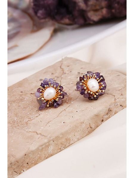 – materiał 1: mosiądz- powłoka: złoto- materiał 2: perły- zapięcie: wtyk- rodzaj kamienia: ametyst- kolor kamienia: fioletowyWskazówka: Zdjęcie produktu w powiększeniu.