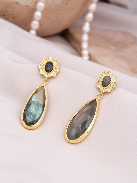 Pierres delicates Pozłacane kolczyki-wkrętki z labradorytami rozmiar: onesize