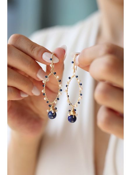 – materiał: mosiądz- powłoka: złoto- zapięcie: bigiel- rodzaj kamienia: szafir- kolor kamienia: granatowy- rodzaj perły: hodowlanaWskazówka: Zdjęcie produktu w powiększeniu.