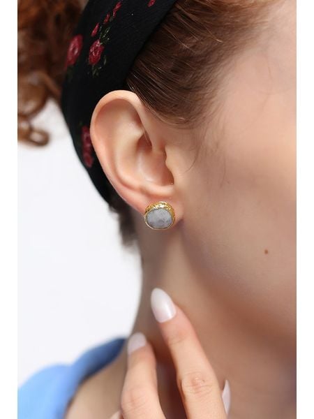 Pierres delicates Pozłacane kolczyki-wkrętki z kamieniami księżycowymi rozmiar: onesize