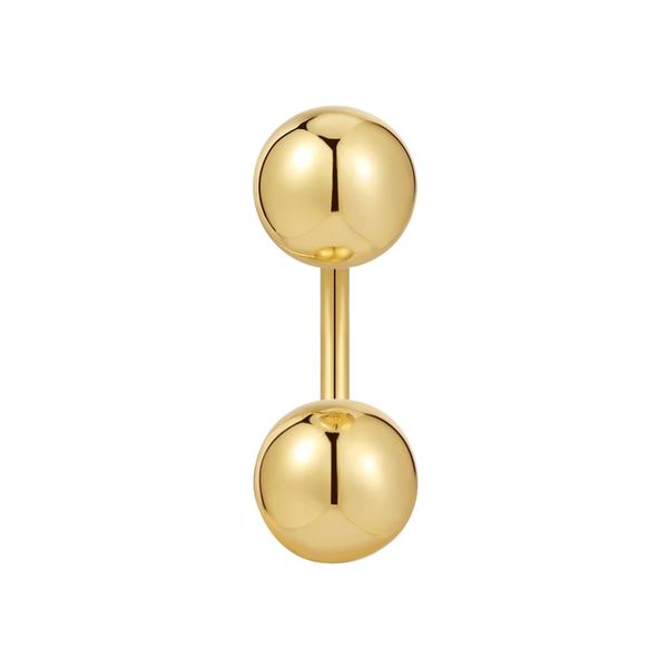 INFORMACJE OGÓLNE: Rodzaj kolczyków: Piercing Zapięcie: Zamek skrętny Grupa docelowa: Kobiety Kolekcja: Happystuds MATERIAŁ: Materiał podstawowy: Srebro wysokiej próby Kolor materiału podstawowego: Żółte złoto Delikatność: 925/- Powłoka: Pozłacany 14-karatowym żółtym złotem Wykończenie powierzchni: Polerowana na wysoki połysk WYMIARY: Wysokość kolczyka w mm, w przybliżeniu:14,4 Szerokość kolczyka w mm, w przybliżeniu: 5,1