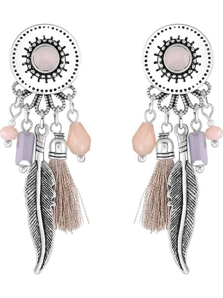 – materiał: metal- powłoka: rodowanie- zapięcie: wtyk- rodzaj kamienia: kryształ- kolor kamienia: jasnoróżowyWskazówka: Zdjęcie produktu w powiększeniu.