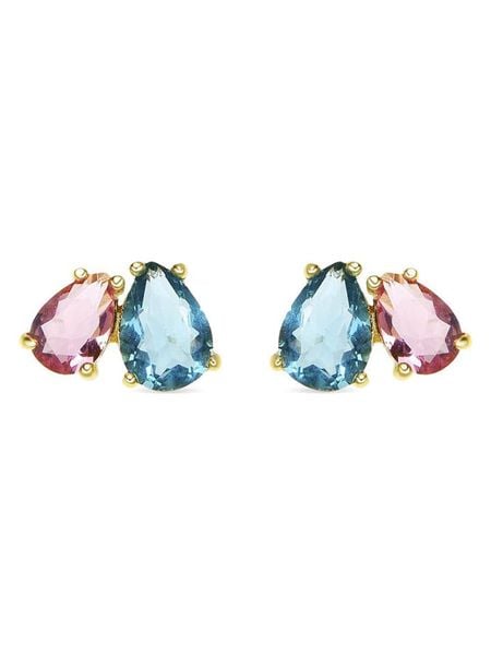 – materiał: srebro Sterling próby 925- powłoka: w kolorze złota- zapięcie: motylkowe- rodzaj kamienia: cyrkonia- kolor kamienia: niebieski, różowyWskazówka: Zdjęcie produktu w powiększeniu.