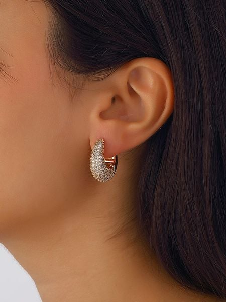 – materiał: mosiądz- powłoka: 14K złoto- zapięcie wtykowe- rodzaj kamienia: cyrkonia- kolor kamienia: bezbarwnyWskazówka: Zdjęcie produktu w powiększeniu.