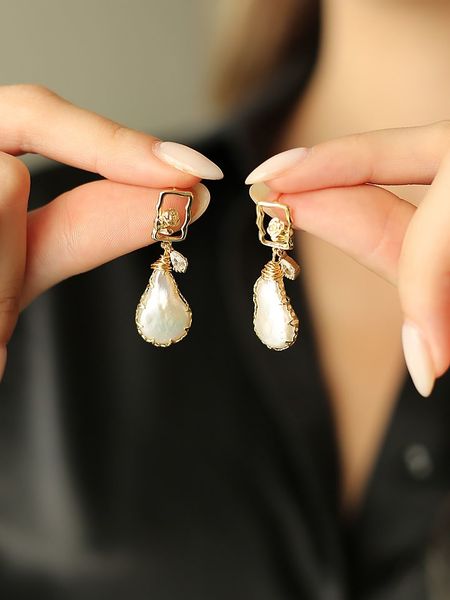 NORI kolczyki srebrne wiszące duże białe perły barokowe angielskie zapięcie