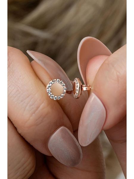 – materiał: srebro Sterling próby 925- powłoka: różowe złoto- zapięcie: motylkowe- rodzaj kamienia: cyrkonia- kolor kamienia: bezbarwnyWskazówka: Zdjęcie produktu w powiększeniu.