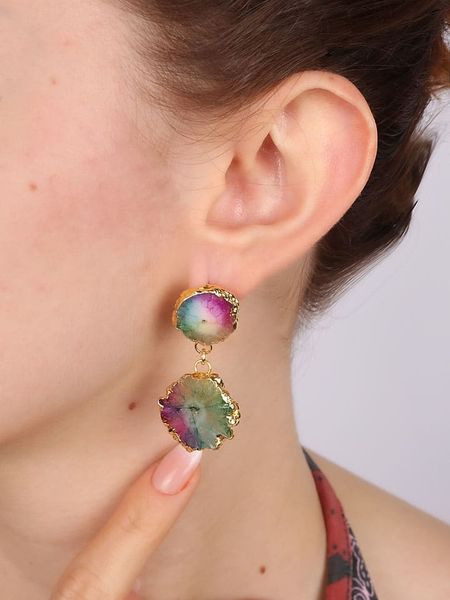 – materiał: mosiądz- powłoka: złoto- zapięcie: motylkowe- rodzaj kamienia: kwarc- kolor kamienia: wielokolorowy- opakowanie: pudełko prezentoweWskazówka: Zdjęcie produktu w powiększeniu.